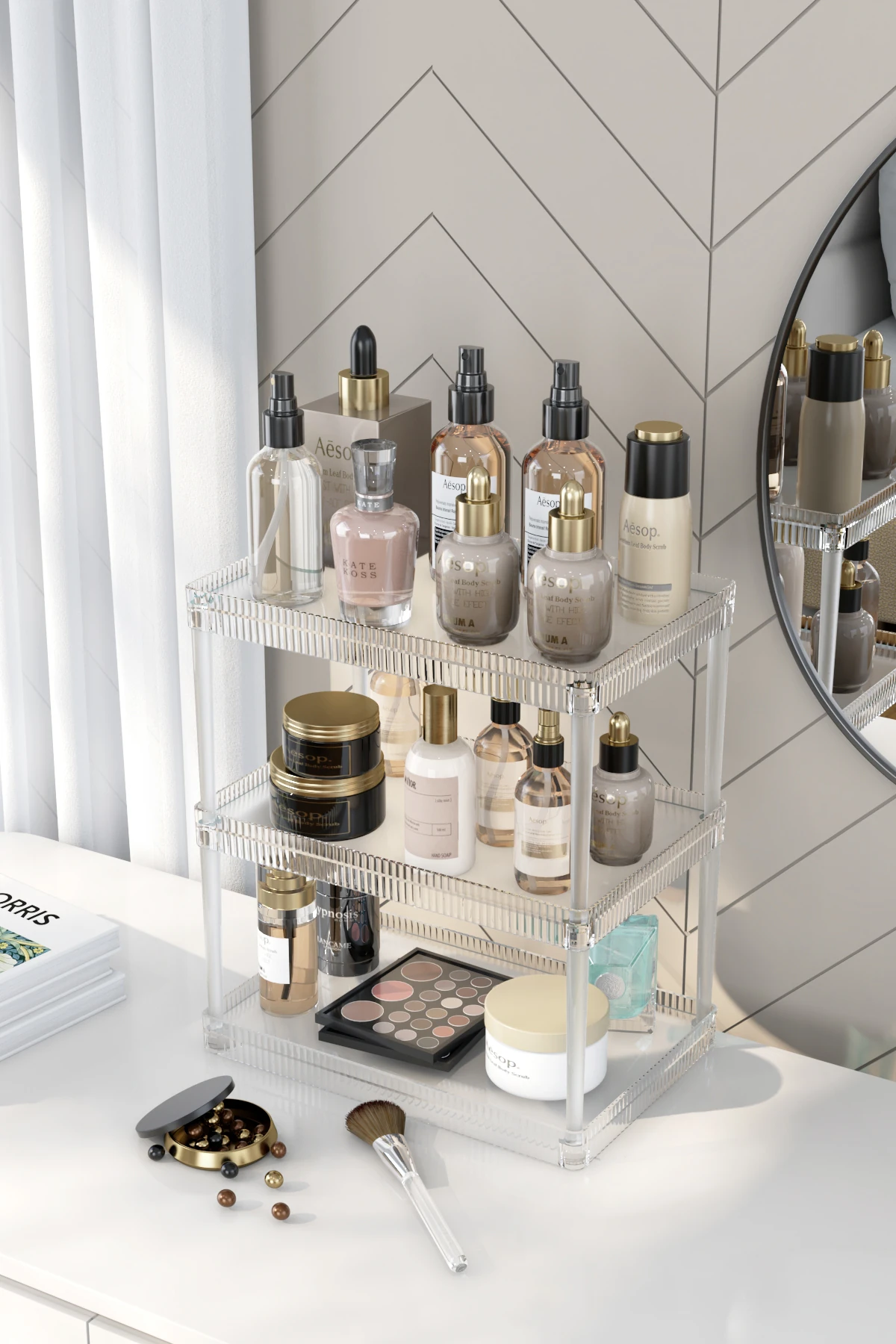 Çift katlı çok amaçlı makyaj ve kozmetik organizer düzenleyici raf, geniş kullanım alanı sunarak düzenli bir yaşam alanı oluşturmanıza yardımcı olur. İki katlı tasarımı sayesinde makyaj malzemelerinizi, kozmetik ürünlerinizi ve diğer küçük eşyalarınızı kolayca organize edebilirsiniz. Şık ve modern görünümüyle her ortamda hem estetik hem de işlevsellik sunar. Düzen ve pratiklik arayanlar için ideal bir çözüm!